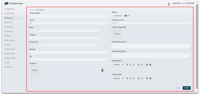 - ប្រសិនបើអ្នកចង់ឱ្យផលិតផលរបស់អ្នកបង្ហាញនៅលើម៉ាស៊ីនឆូតកាត សូមចុចលើ (POS)