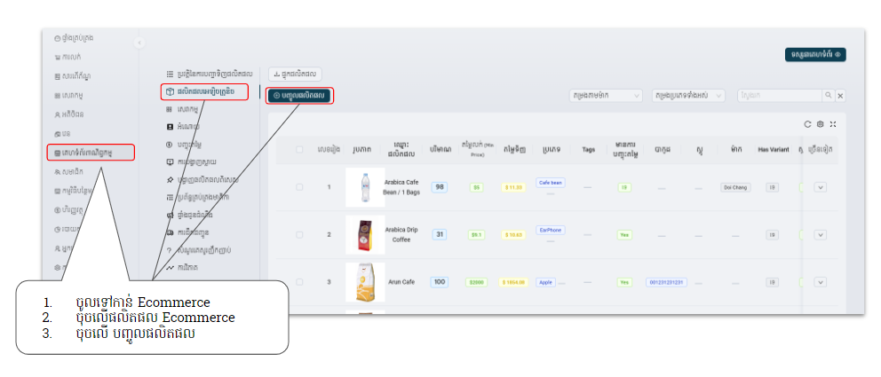 - ប្រសិនបើអ្នកចង់ឱ្យផលិតផលរបស់អ្នកបង្ហាញនៅលើ Ecommerce សូមចុចលើ (Ecommerce)