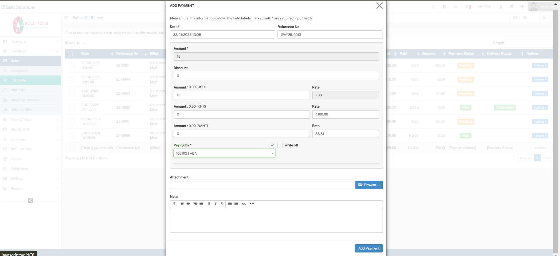 បន្ទាប់មកទៅកាន់ បន្ថែមការលក់(Add Sale)