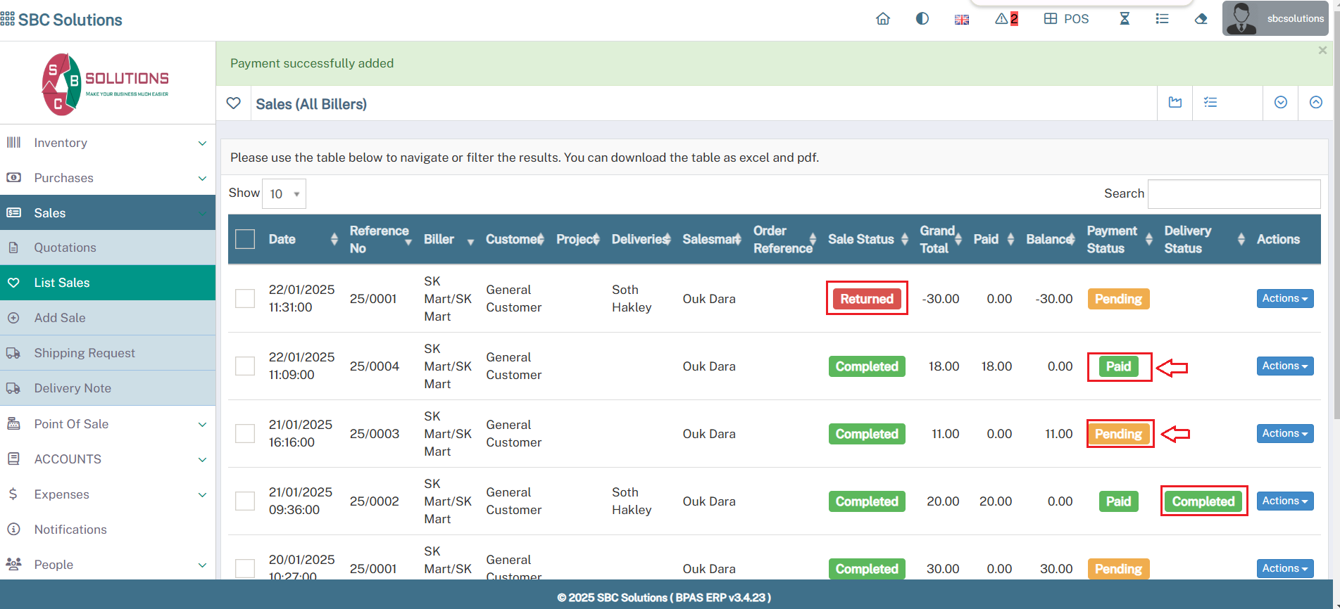 បានទទួលយកការបញ្ជាលក់(Sales Completed): ជាកន្លែងដែលបង្ហាញពីទំនិញដែលម្ចាស់អាជីវកម្មបានទទួលការបញ្ជាទិញពីអតិថិជន