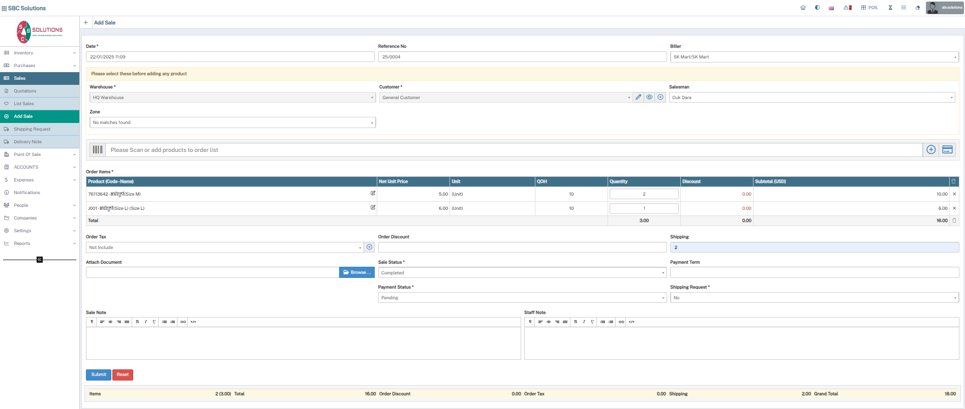 បញ្ជាទិញទំនិញ *(Order Items *): ជាកន្លែងស្កែនឬវាយបញ្ចូលទំនិញដែលអតិថិជនរបស់អ្នកបានកម្មង់ រូចបំពេញចំនួនកម្មង់ ឬការបន្ថែមការគិតពន្ធ មានការបញ្ចុះតម្លៃ មានការដឺកជញ្ជូនជាដើមអ្នកអាចបន្ថែមបានរូចចុច ដាក់ស្នើ ជាការស្រេច។