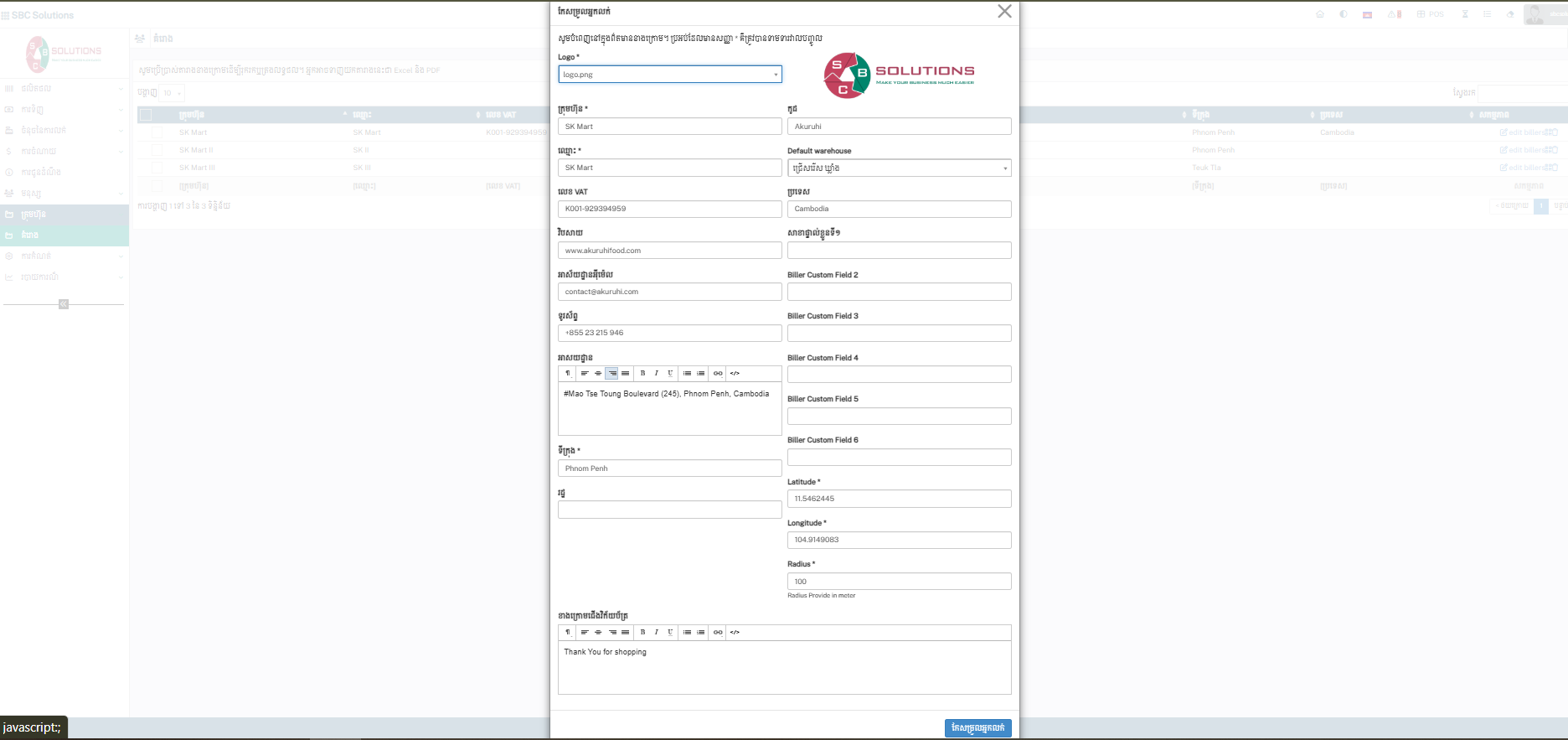 កំណត់វិក្កយបត្រ(Invoice Setting) : ជាកន្លែង