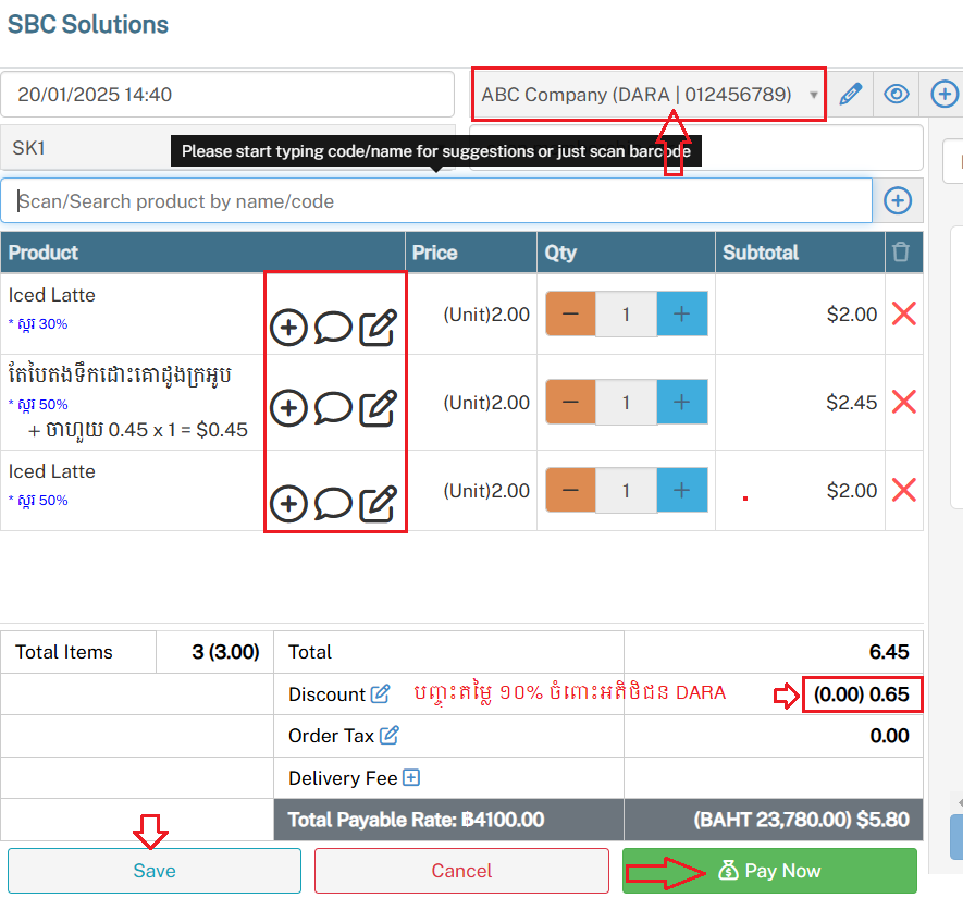 ប៊ូតុងប៊ិច: ជាមុខងារសម្រាប់ធ្វើការកំណត់ចំនួនបញ្ចុះតម្លៃលើការទិញទំនិញដែលអាចគិតជាភាគរយនិងអាចគិតជាចំនួនទឹកប្រាក់ទៅតាមតម្រូវការជាក់ស្តែង