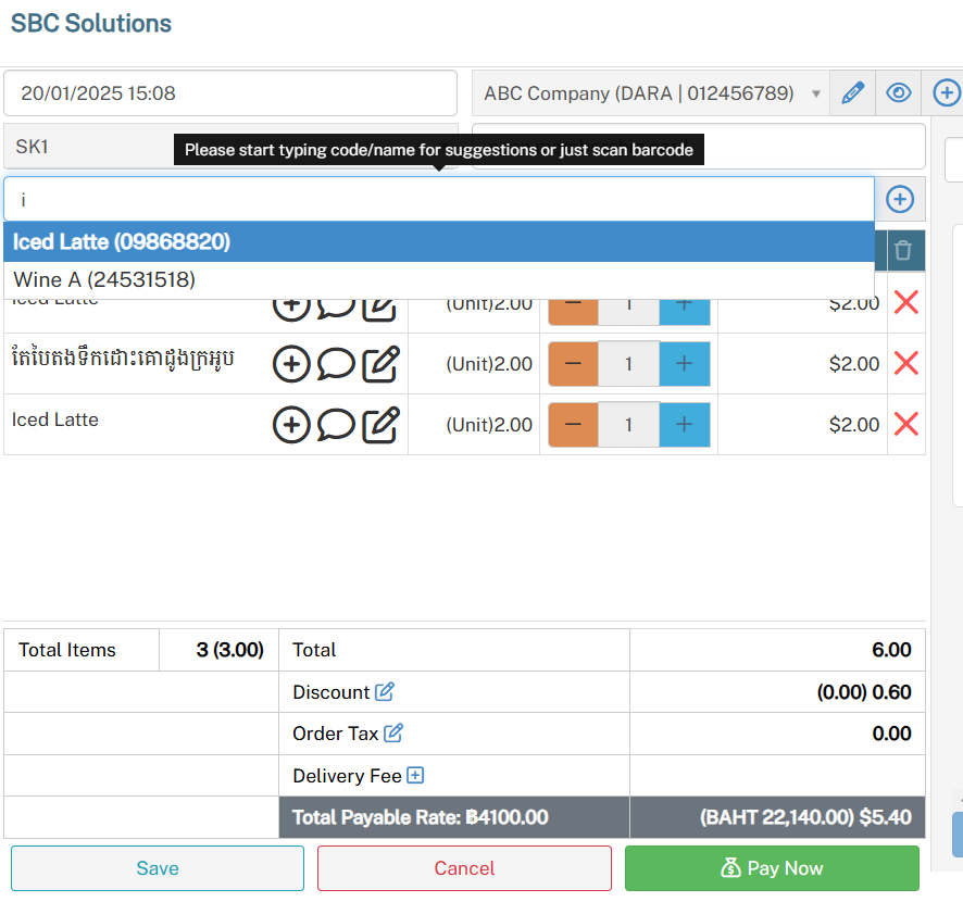 រក្សារទុកវិក័យបត្រ(Save): ជាមុខងារសម្រាប់ធ្វើការរក្សារទុកព័ត៌មានទំនិញរបស់អតិថិជន