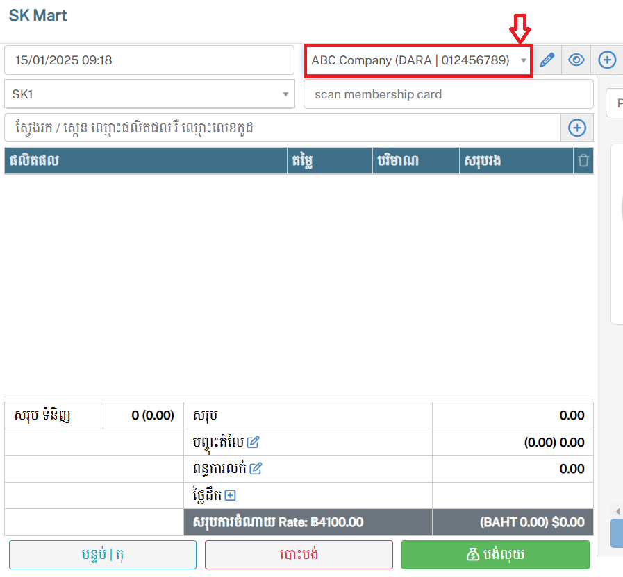 ការលក់ចំពោះអតិថិជនមាន កាតសមាជិក(Scan Member Card):