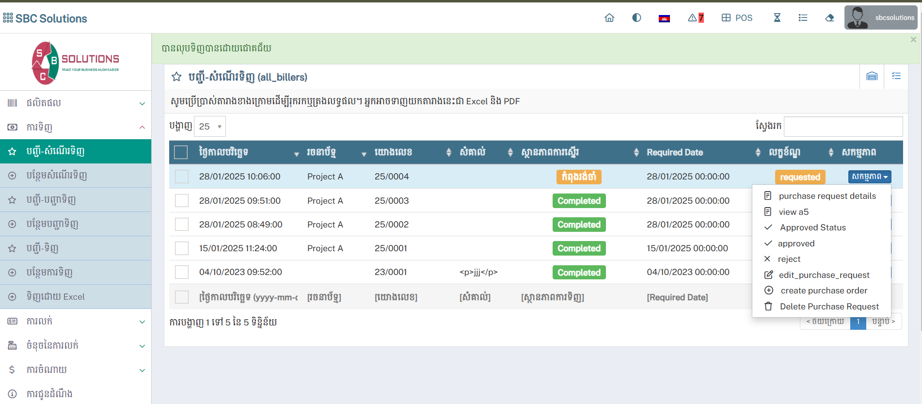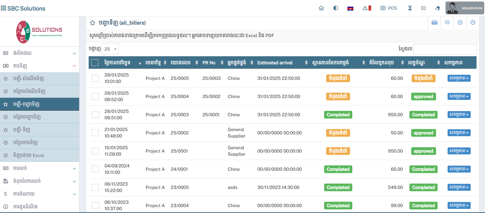 កែសម្រួលស្ថានភាព / Update Status : នៅពេលចុចទៅកាន់បញ្ជីទិញដើម្បីកែសម្រួលស្ថានភាព លោកអ្នកនិងអាចផ្តល់ព័ត៌មានអំពីបញ្ជីទិញទំនិញរបស់អ្នកដែលមានមុខងារដូចជា៖