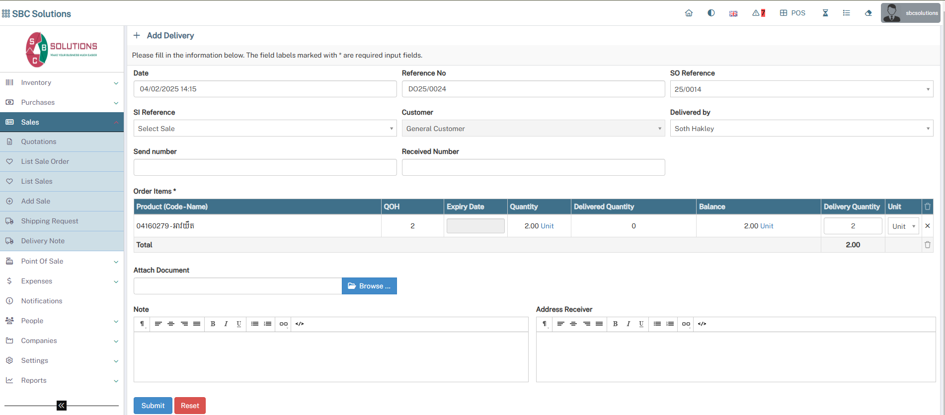 ក្នុងករណីទំនិញកំពុងដឹកជញ្ចូន តម្រូវអោយអ្នកចូលទៅកាន់ពាក្យដឹកជញ្ចូន (Add delivery) ហើយបន្តចុចដាក់ស្នើ ជាការស្រេច(ករណីនេះមានន័យថាអ្នកដល់តាំងភ្ញៀវបានគិតតាមក្រោម)