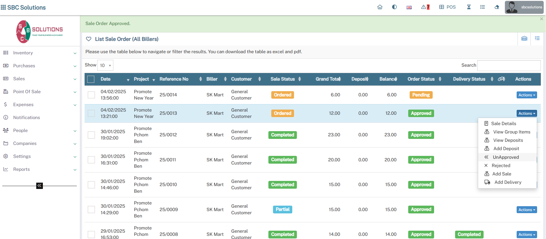 បានទទួលយកការបញ្ជាទិញ(Order Approved): ជាកន្លែងដែលបង្ហាញពីទំនិញដែលម្ចាស់អាជីវកម្មបានទទួលការបញ្ជាទិញពីអតិថិជន