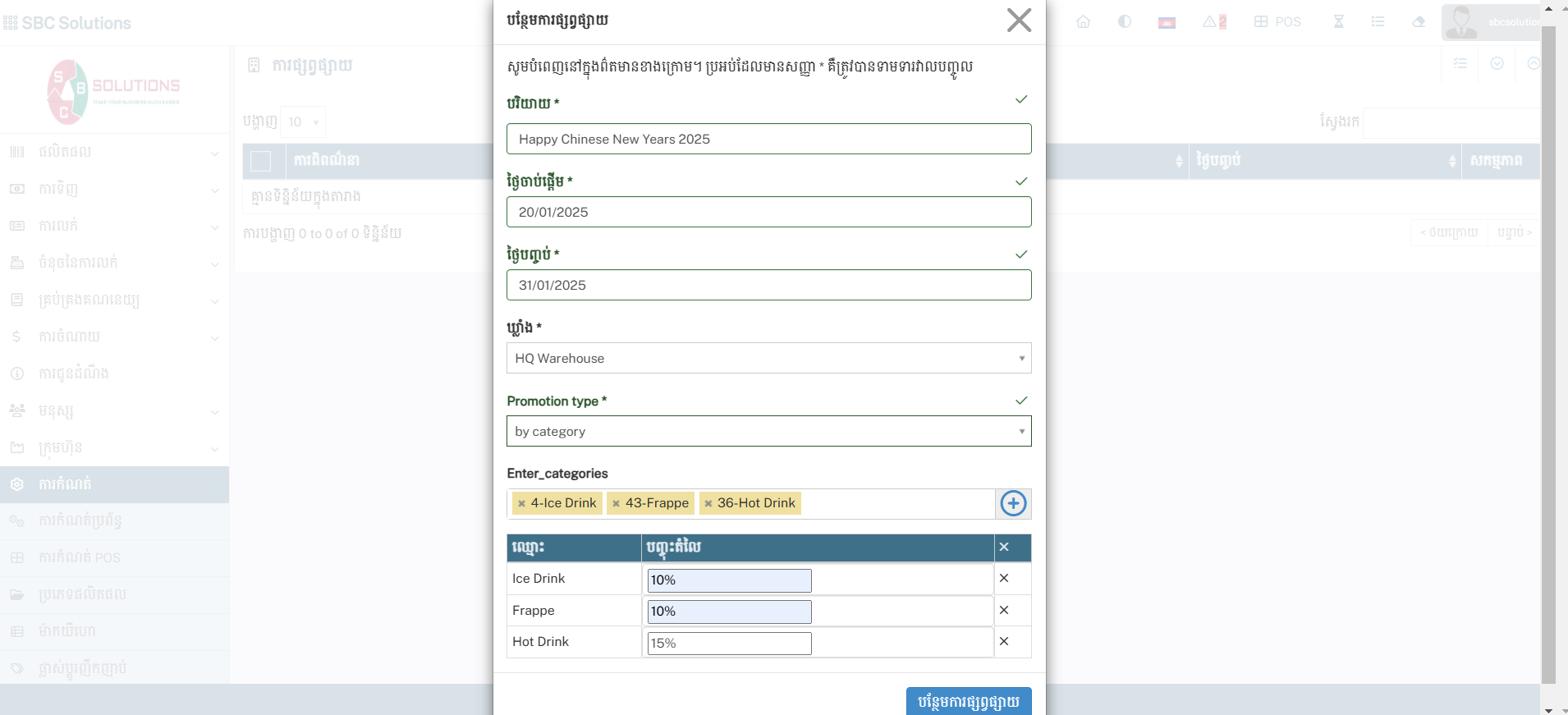 ចុចទៅលើពាក្យថា ការផ្សព្វផ្សាយ (Promotion) ដែលជាកន្លែងបង្កើត ការបញ្ចុះតម្លៃ