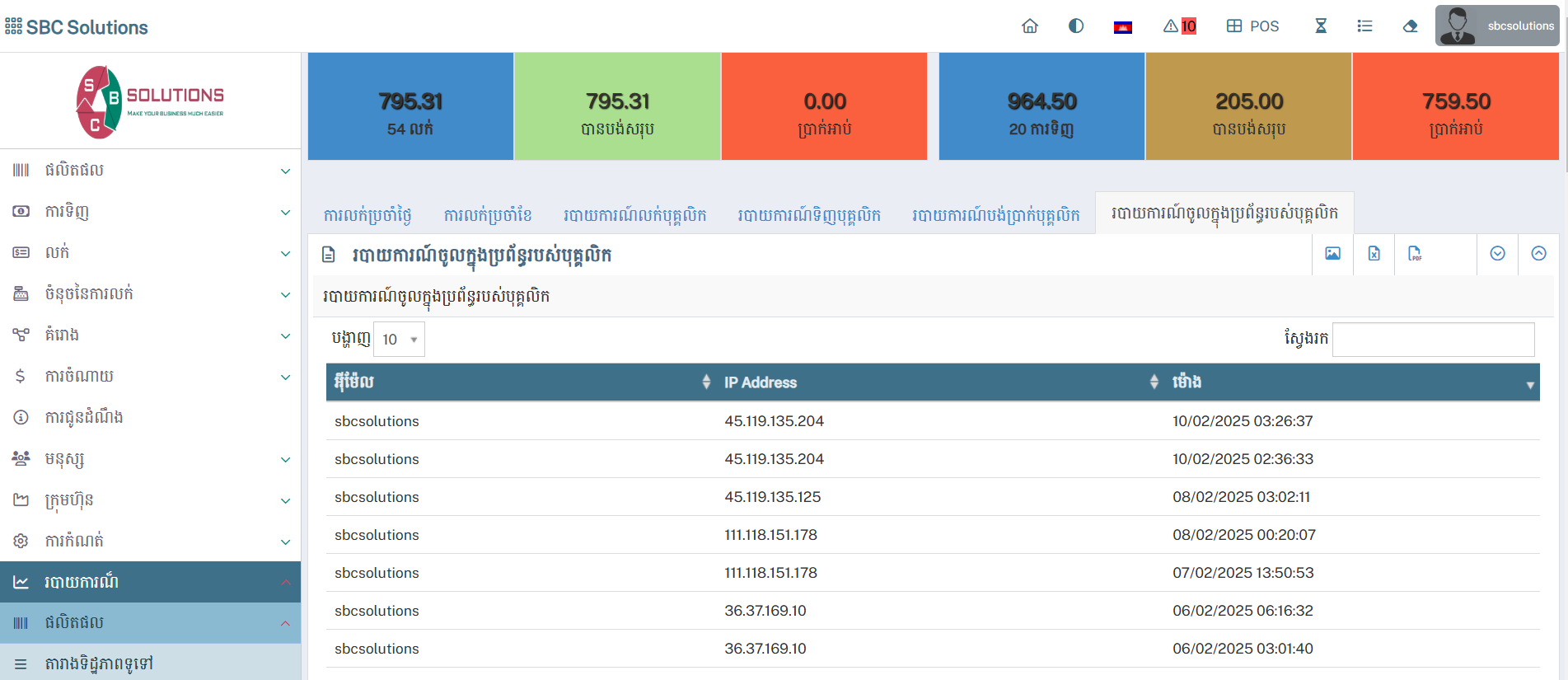 របាយការណ៍ប្តូរវេន(Shift Report)