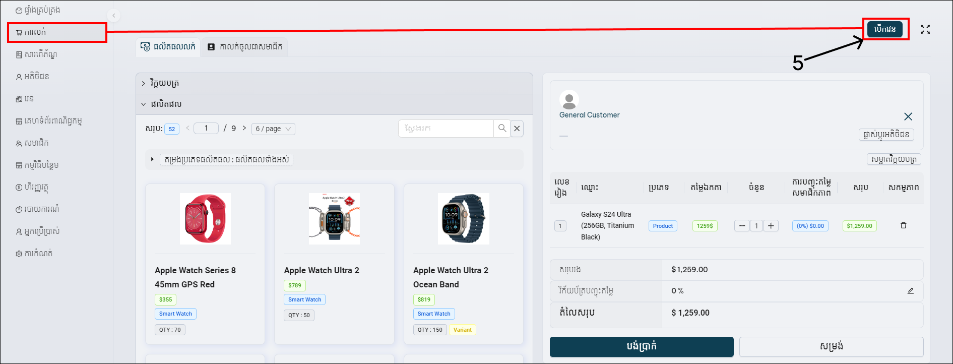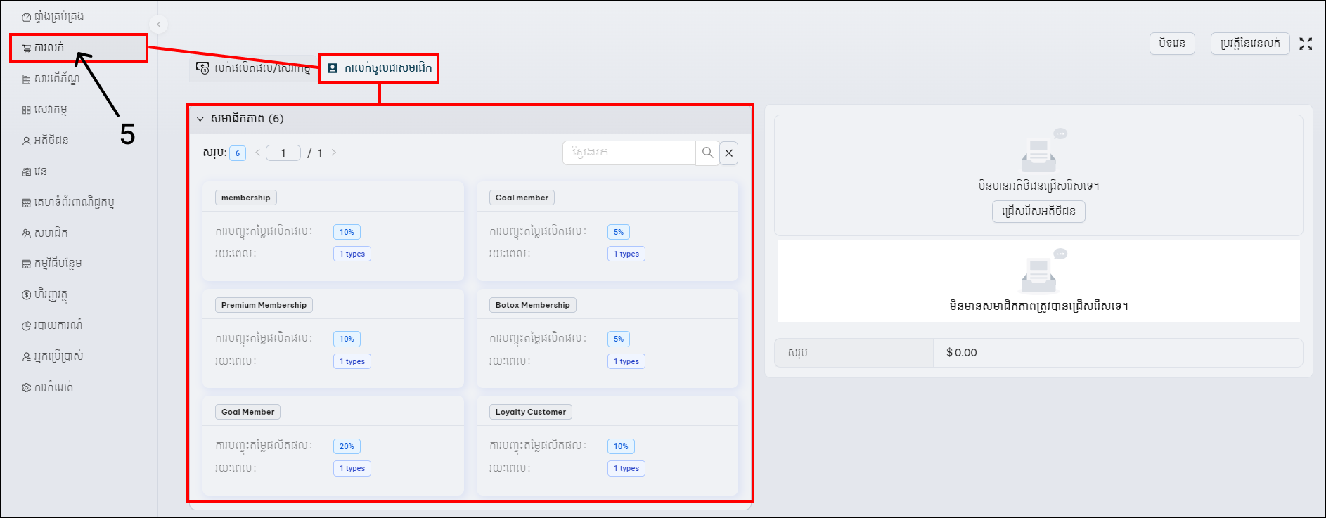 អ្នកក៏អាចលក់ជា សមាជិកបានទៀតផង ដោយអ្នកចូលទៅកាន់ ការលក់(POS/Sale) រួចហើយស្វែងរកពាក្យថា ការលក់ចូលជាសមាជិក (Sale Membership )