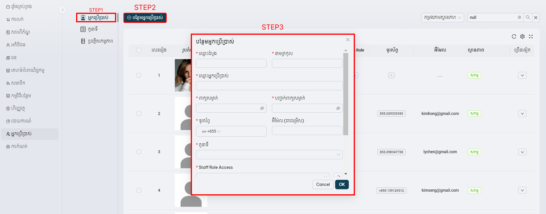 ជំហានទី៤: ក្រោយពីការបំពេញព័ត៌មានខាងលើរួច អ្នកគ្រាន់តែបន្តទៅកាន់ពាក្យOKជាការស្រេច ក្នុងការបន្ថែមអ្នកប្រើប្រាស់ក្នុងហាងរបស់លោកអ្នក