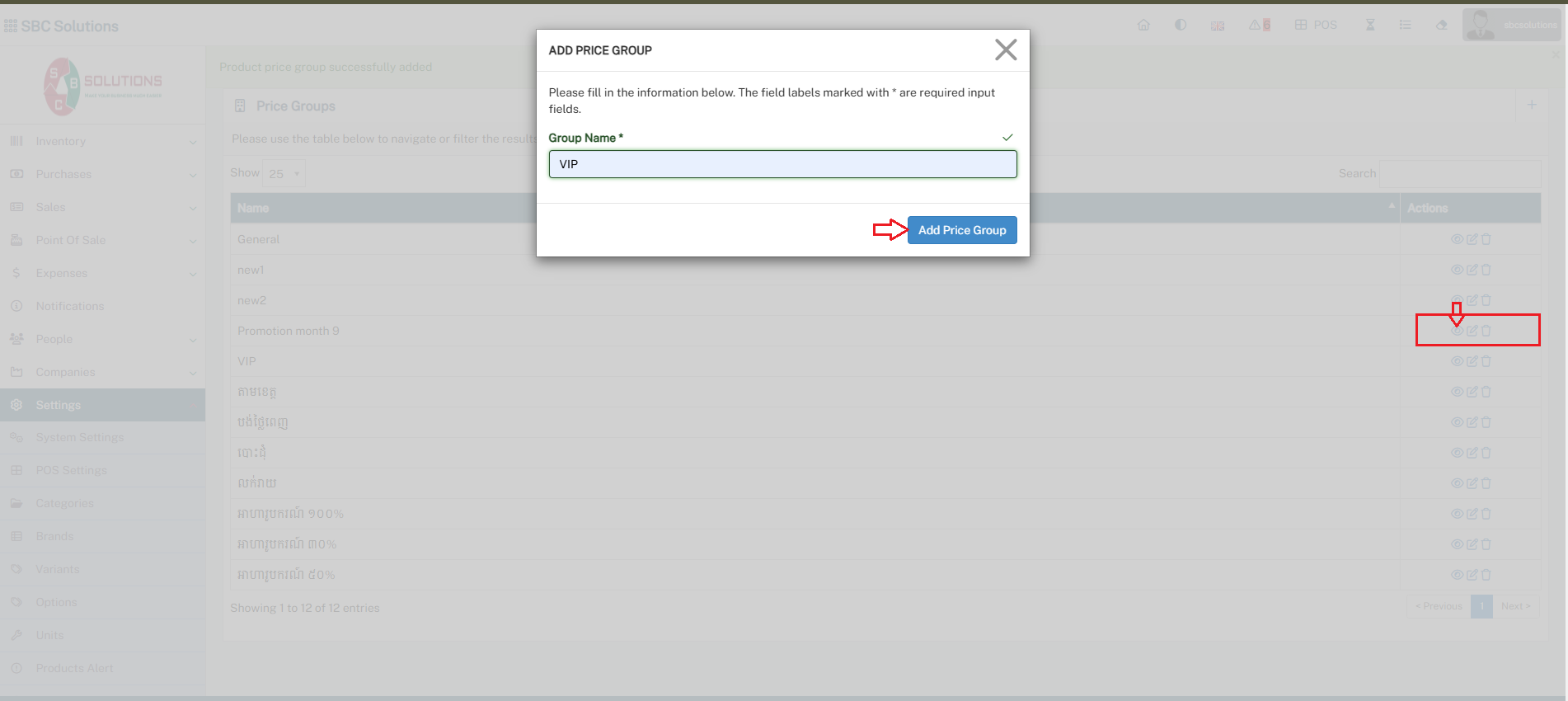 បំពេញរួចយើងយើងធ្វើការចុច បន្ថែមក្រុមតម្លៃលក់ / Add Price Group ។