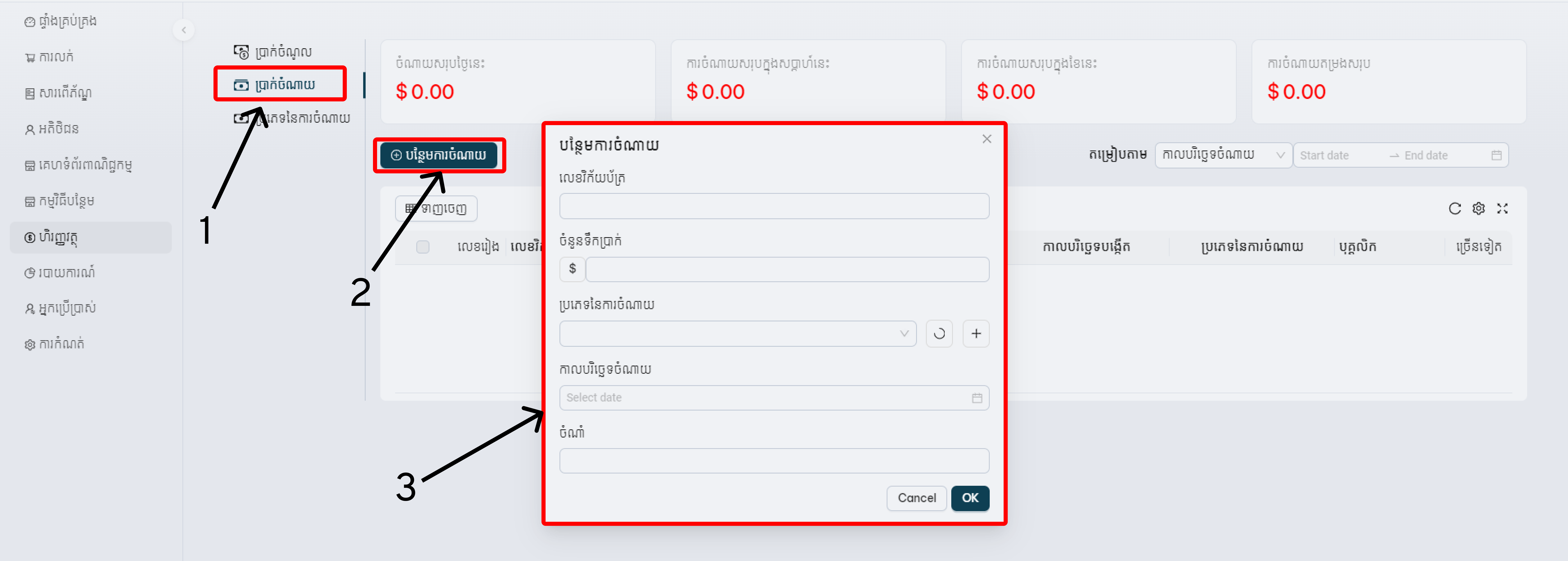 - ចុចទៅលើពាក្យ បង្កើតការចំណាយ