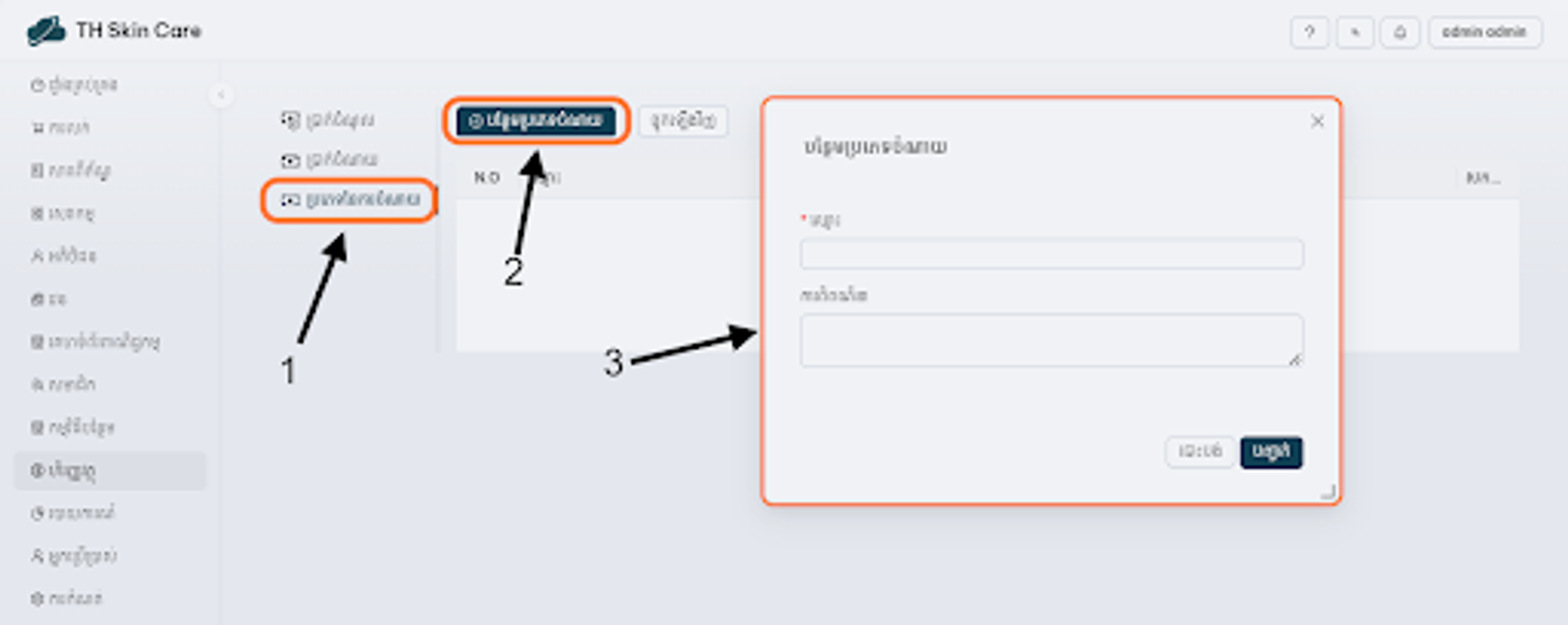 - ចុចទៅលើពាក្យ បន្ថែមប្រភេទនៃការចំណាយ