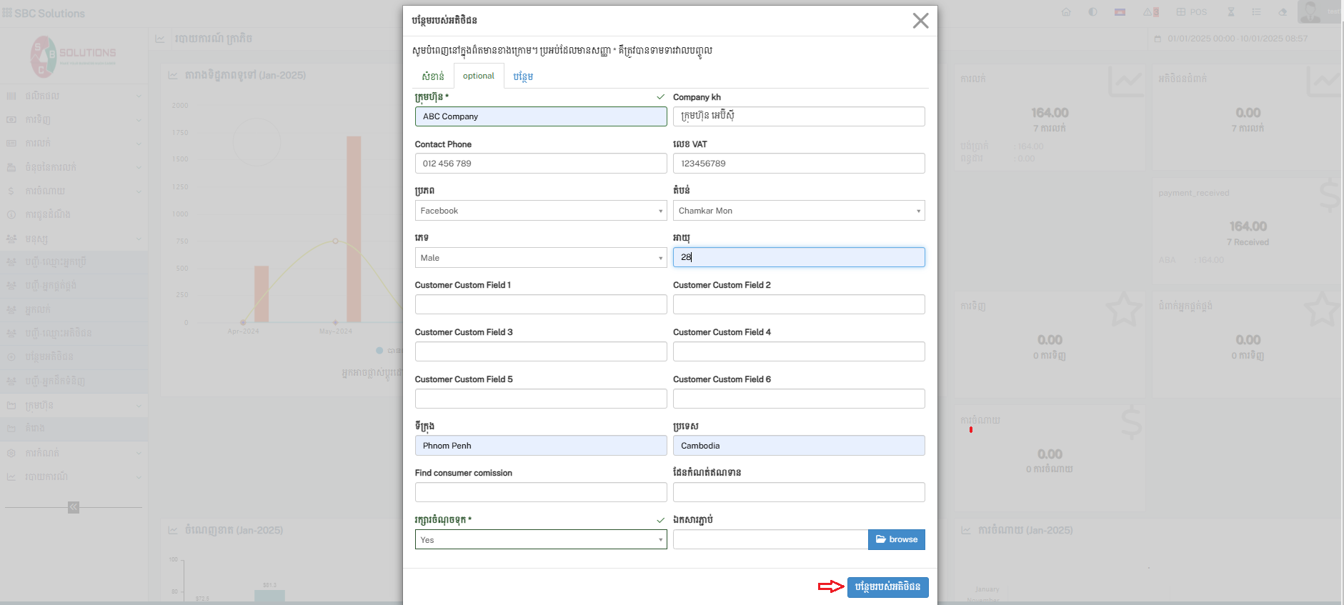 របៀបបង្កើត អតិថិជន នៅក្នុង Sbcsolution៖