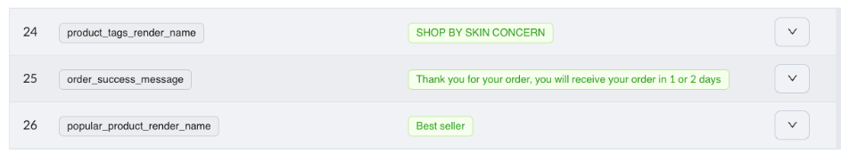 អ្នកប្រើប្រាស់អាចផ្លាស់ប្តូរឈ្មោះស្លាកផលិតផល សារជោគជ័យនៃការបញ្ជាទិញ និងឈ្មោះផលិតផលពេញនិយម