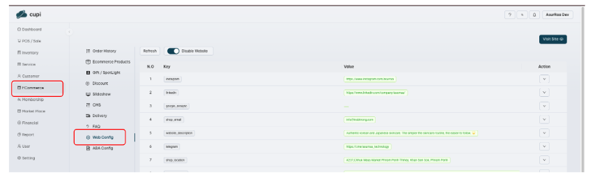 - អ្នកអាចកែសម្រួលព័ត៌មានគេហទំព័ររបស់អ្នក ឬអាចផ្លាស់ប្តូរឡូហ្គោ លេខទូរស័ព្ទ អាសយដ្ឋាន….។ល។