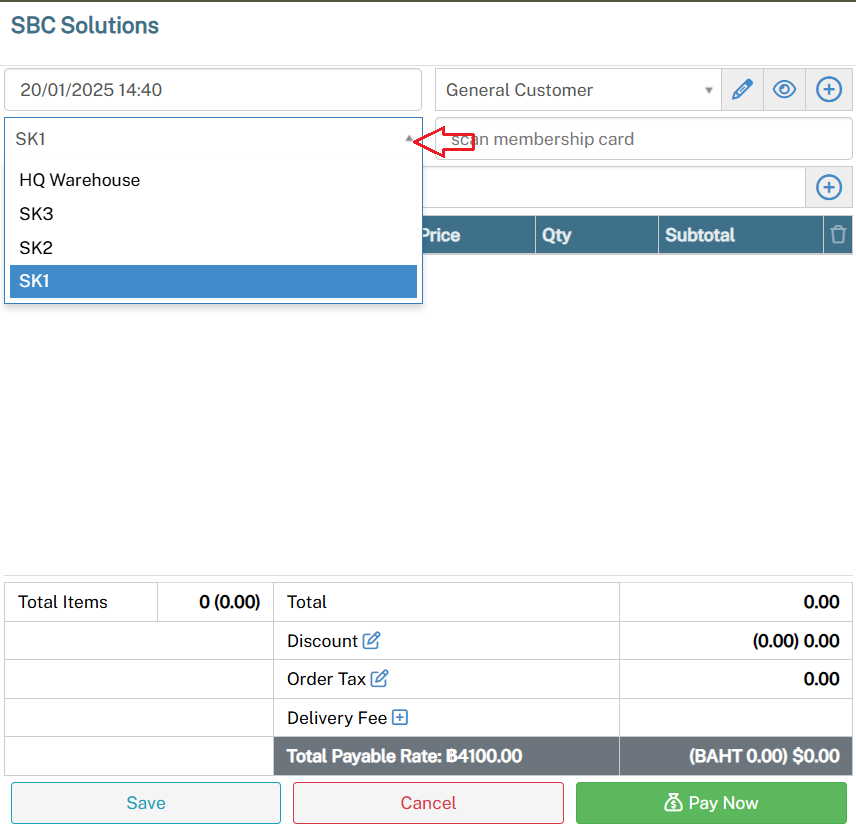 ឃ្លាំងផលិតផល(Warehouse):ជាកន្លែងសម្រាប់ធ្វើការជ្រើសឃ្លាំងផលិតផលដែលលក់នៅក្នុងហាង(ករណីអ្នកមានឃ្លាំងច្រើន)