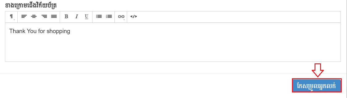 នៅពេលដែលអ្នកបានកែប្រែរួចរាល់ហើយ សូមអ្នកចុចលើពាក្យថា “ កែសម្រួលអ្នកលក់ ” នោះទើបទិន្នន័យដែលអ្នកបានកែប្រែវា រក្សាទុក :