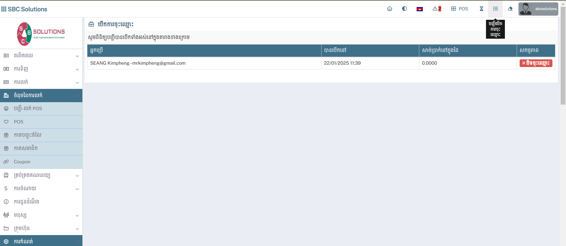 ដើម្បីធ្វើការចូលទៅកាន់ការបើកប្រើប្រាស់ប្រព័ន្ធ(POS