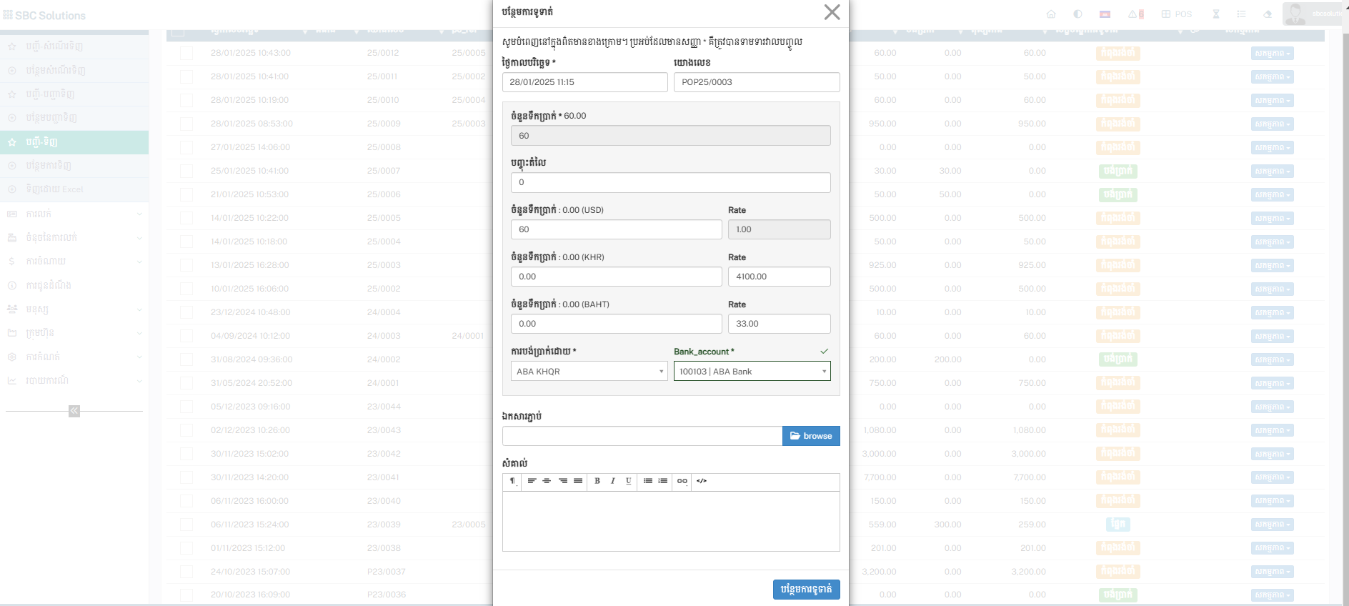 ការបង់ប្រាក់ / Add Payment : ជាកន្លែងដែលបង់ប្រាក់ទៅឱ្យអ្នកផ្គត់ផ្គង់ទំនិញរបស់អ្នក