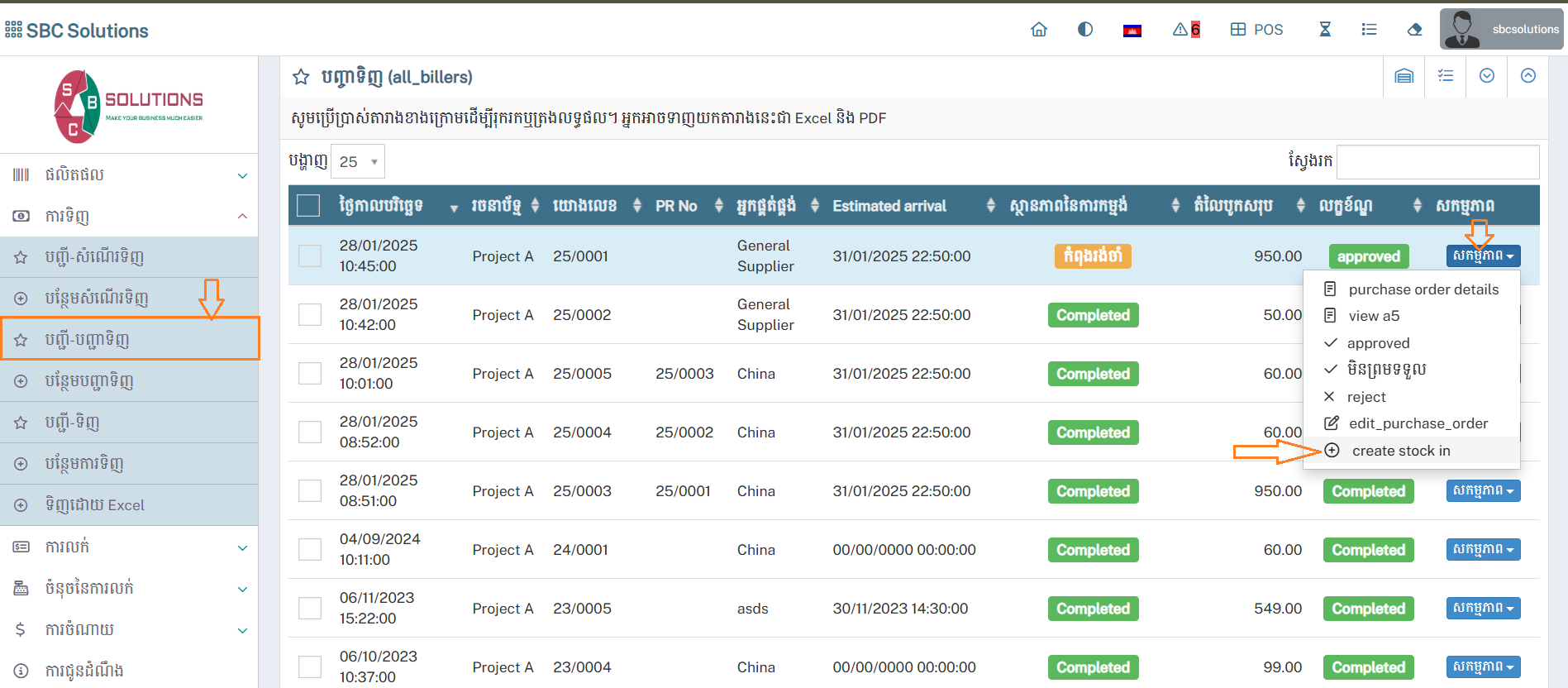 - ជំហានទី១ : តម្រូវអោយមអ្នកចុចបញ្ជី-បញ្ជាទិញ(List Purchase Order)
