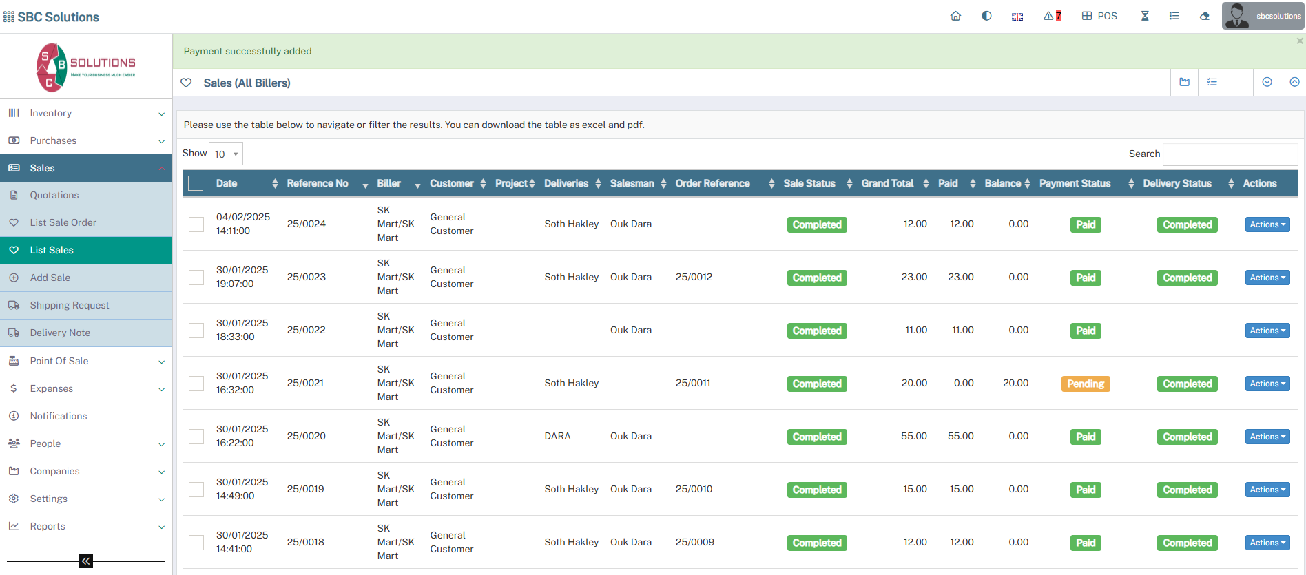 ជាកន្លែងដែលបង្ហាញពីចំនួនអតិថិជនបានទិញទំនិញក្នុងប្រព័ន្ធ SBC BPAS