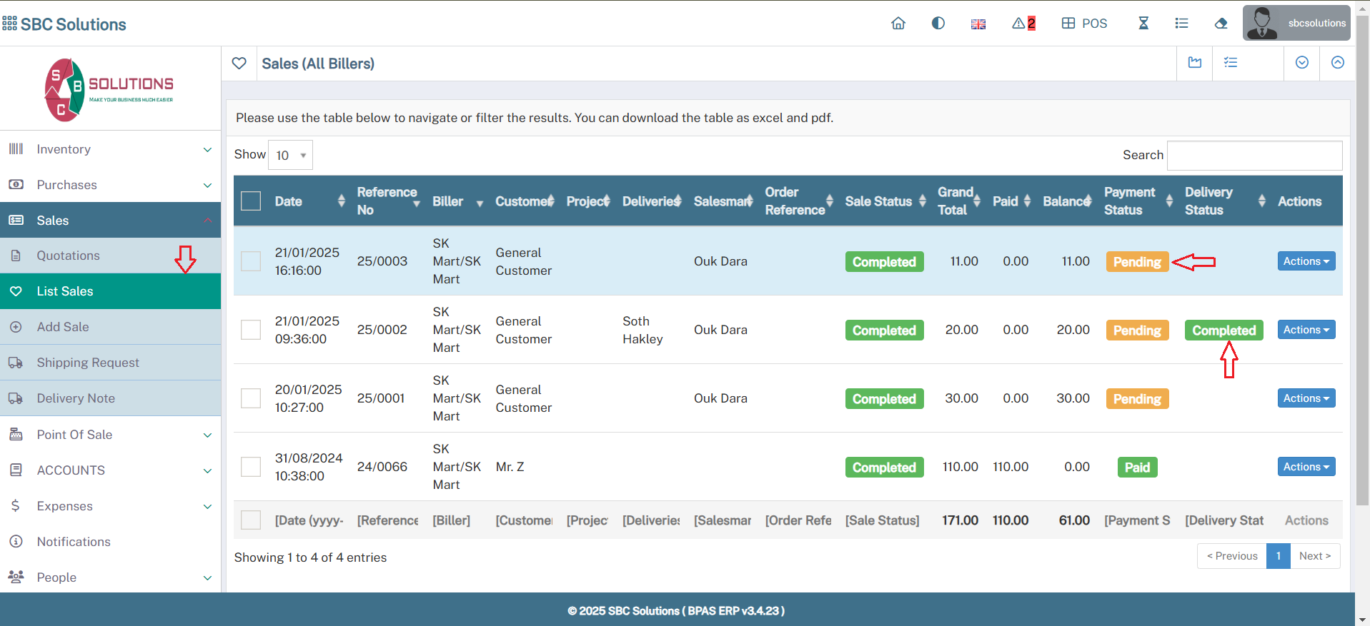 បន្ទាប់ពីការដាក់លក់ផលិតផលរួចមក លោកអ្នកតម្រូវអោយចូលទៅកាន់មុខងារបញ្ជី-លក់ឬភាសាអង់គ្លេសថាList Sales(ជាកន្លែងសម្រាប់ទូរទាត់ប្រាក់ និង ដឹកជញ្ជូនជាដើម)។ក្នុងបញ្ជី-លក់មានមុខងារដូចជា៖