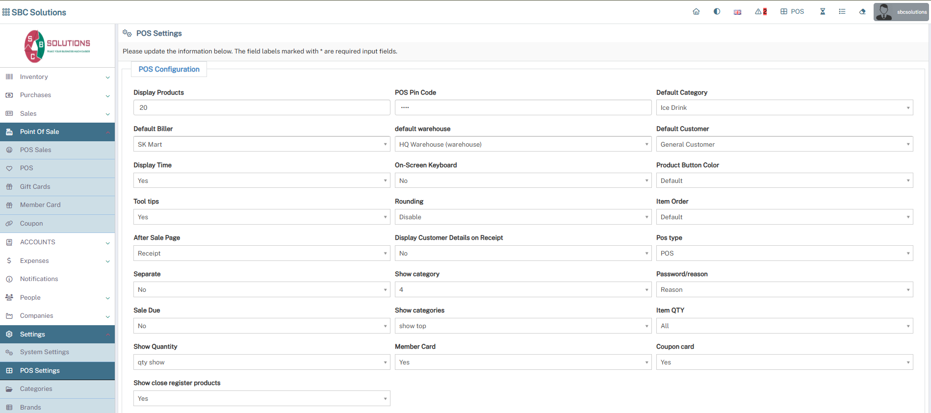នៅពេលនោះអ្នកនឹងចូលទៅផ្ទាំង (POS Settings) ដែលជាកន្លែងធ្វើការកំំណត់ ទៅលើព័ត៌មានផ្សេងៗនៅក្នុងប្រព័ន្ទSBC BPAS