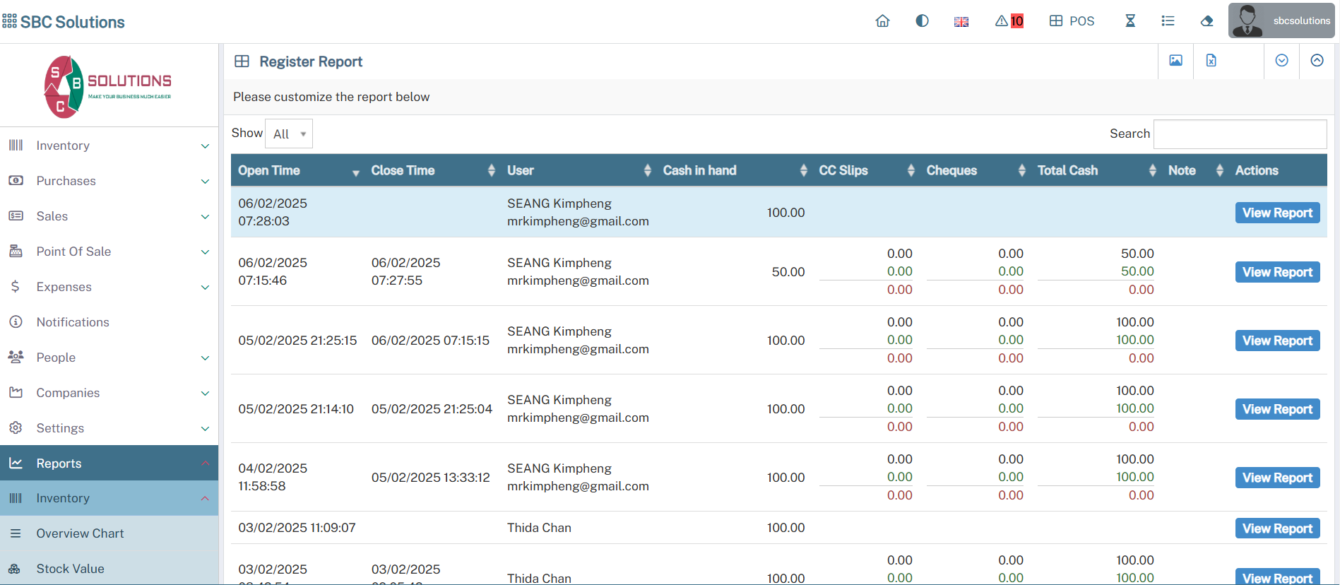 របាយការណ៍ប្តូរវេន(Shift Report)