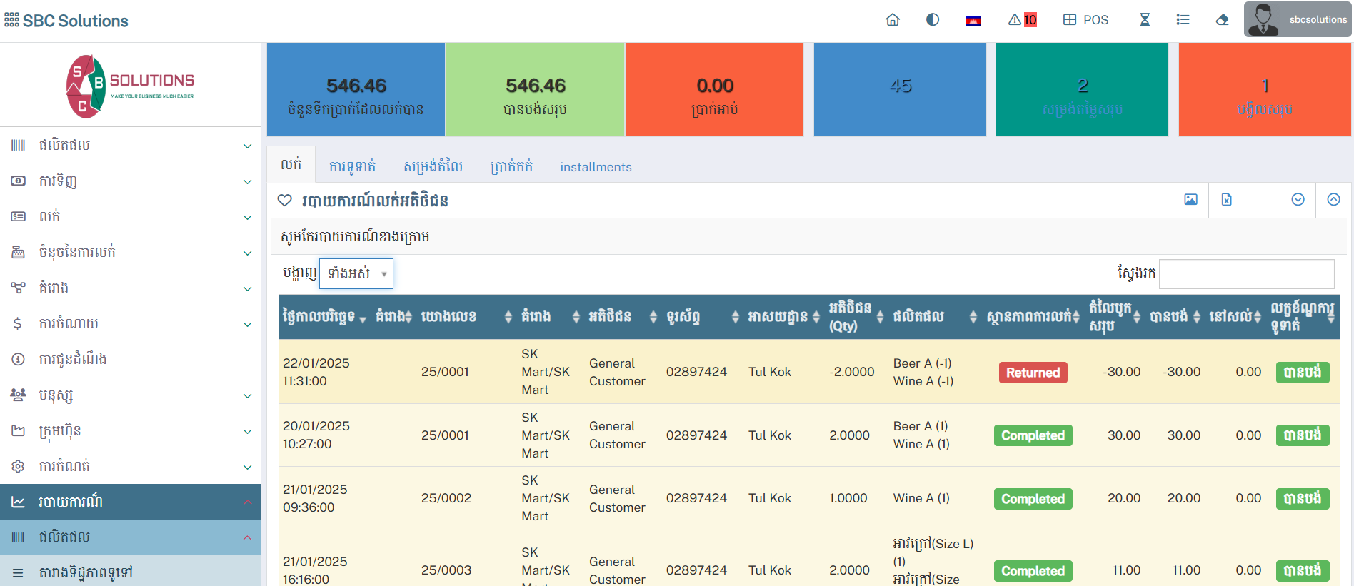 6. ស្វែងយល់ពីរបាយការណ៍របស់អ្នក (Report) k . របាយការណ៍អតិថិជន(Customer Report) On this page k . របាយការណ៍អតិថិជន(Customer Report) របាយការណ៍អតិថិជន(Customer Report) របាយការណ៍អតិថិជន(Customer Report) : ជាកន្លែងមើល របាយការណ៍អតិថិជន(Customer Report) ។