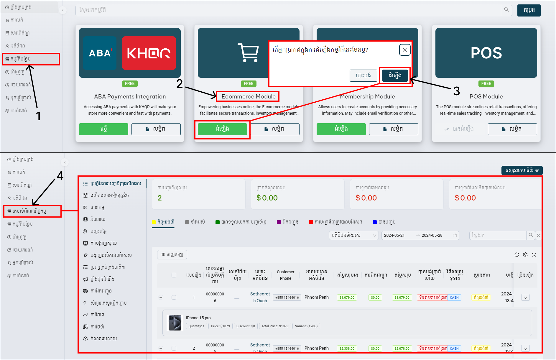 បន្ទាប់មក ស្វែងរកពាក្យថា (Ecommerce Module)