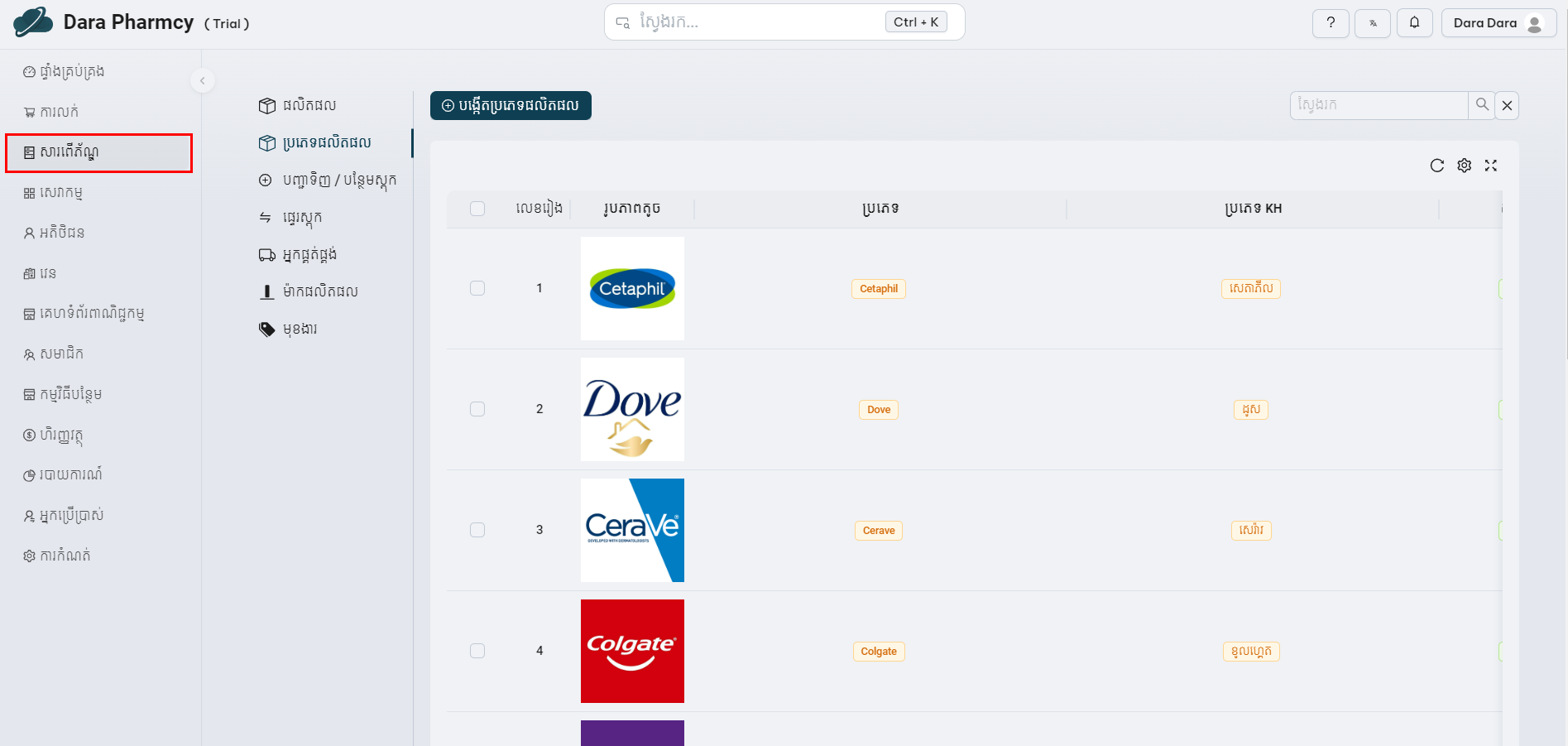 Brand(ជាកន្លែងសម្រាប់ធ្វើការបន្ថែមម៉ាកផលិតផល)